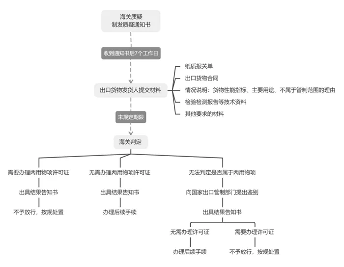 1. Under this system, the Customs is given the power to determine whether the relevant goods are dual-use items to a certain extent. According to the relevant provisions of the Export Control Law and the Regulations on the Export Control of Dual-Use Items, the competent department of commerce of the State Council is the department responsible for the export control of dual-use items, and is responsible for formulating and adjusting the export control list of dual-use items, approving licenses, and responding to inquiries or making identification conclusions on whether they are dual-use items. In other words, the administrative power to determine whether a certain goods are dual-use items is the competent department of commerce under the State Council. The main functions of the Customs in the export control system of dual-use items are to accept and review the export declaration of relevant goods, carry out export inspection of relevant goods, and deal with violations of the export control policy of dual-use items in accordance with the provisions of the Customs Law, which is also reflected in practice. At the same time, although the Export Control Law and the Regulations on the Export Control of Dual-Use Items give Customs the power to raise challenges, they do not give Customs the power to determine whether goods are dual-use items. However, the announcement stipulates that when the relevant goods are exported without submitting the inspection license, and the customs raises a question, the enterprise can determine whether the relevant goods belong to dual-use items or are not dual-use items and carry out follow-up processing, and only when the customs cannot make an accurate judgment will it enter the link of identification by the commerce department, which actually provides a legal basis for the customs to determine whether the relevant goods are dual-use items.